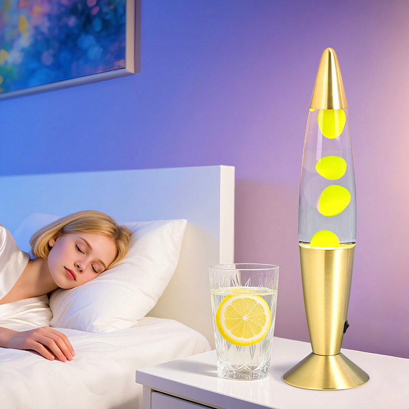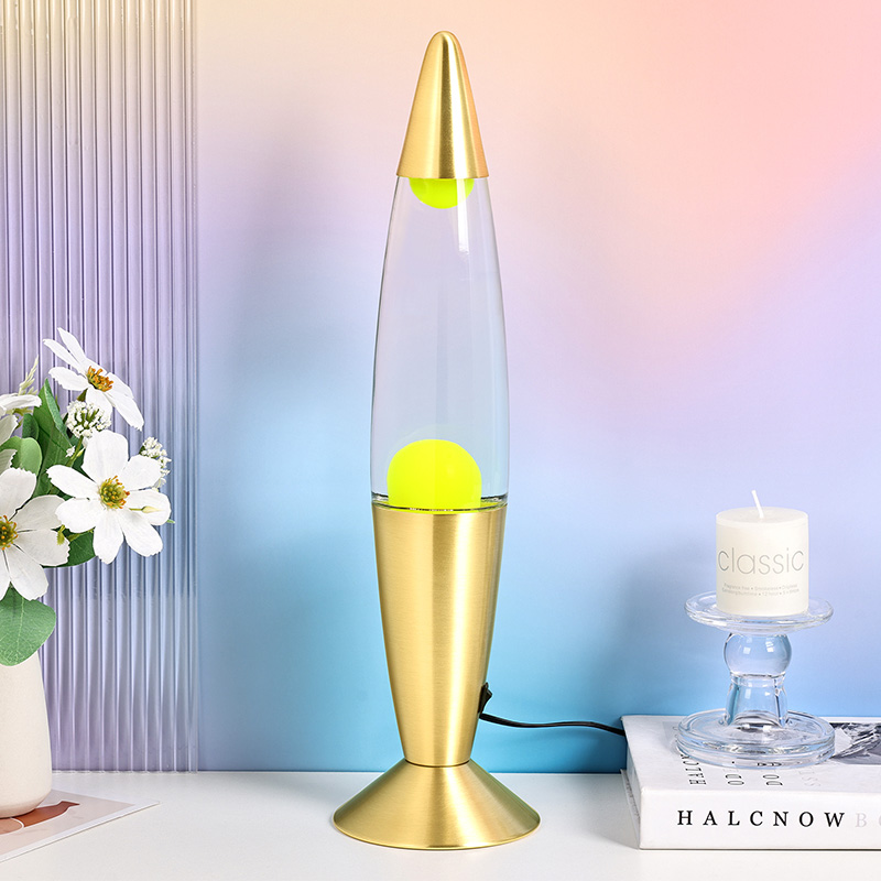 24V16 इंच लक्जरी नारंगी लावा लैंप वैक्स लैंप में पारदर्शी कांच के अंदर शुद्ध पानी और अंदर हरा मोम होता है। गर्म होने के बाद मोम पानी में अनियमित रूप से तैरता रहता है, जिसकी काफी सराहना की जाती है।