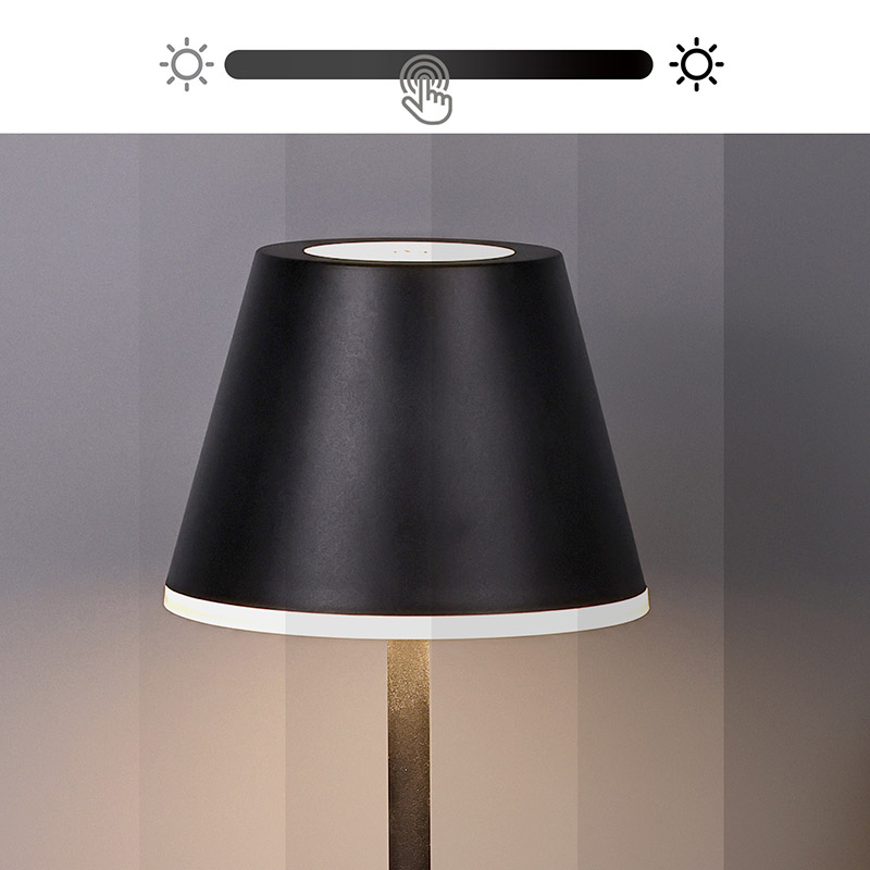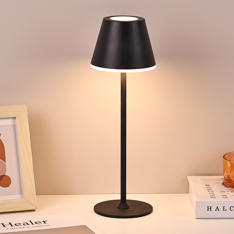 असेंबली कॉर्डलेस एलईडी टेबल लैंप शेड सेंटर के शीर्ष पर एक टच बटन है। रोशनी के स्विच और तीन हल्के रंगों के रूपांतरण को नियंत्रित कर सकता है, बिल्कुल नीचे की तस्वीर की तरह