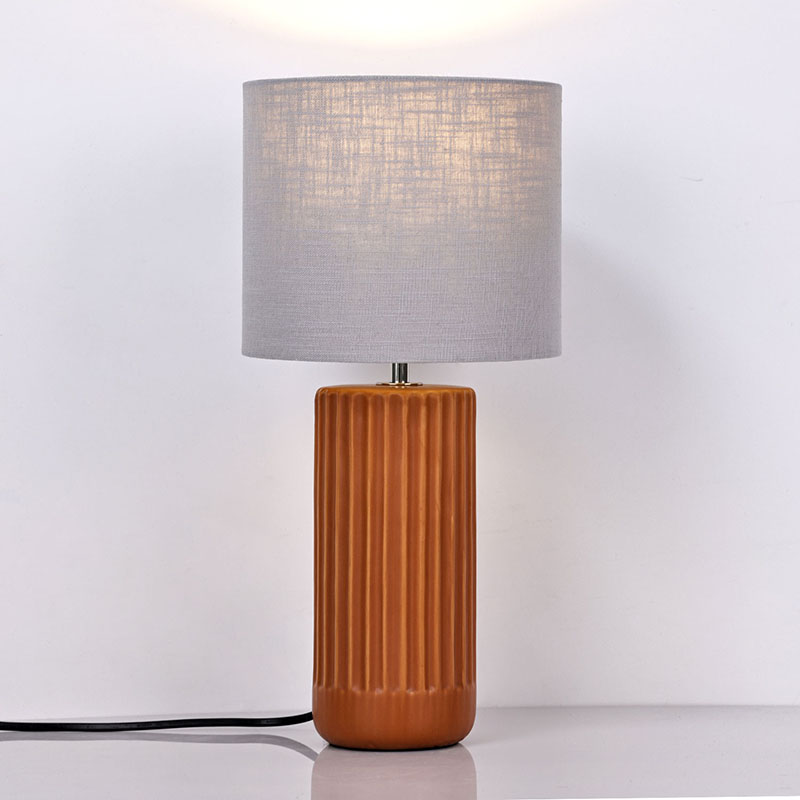 फैब्रिक शेड के साथ सिरेमिक एलईडी टेबल लैंप