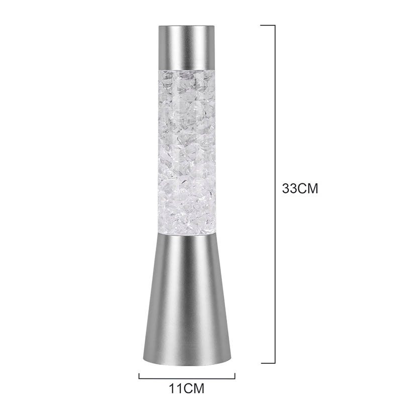 बर्फ जैसे आकार के साथ रंग बदलने वाली लिक्विड ग्लिटर नाइट लाइट में धातु के आधार के साथ एक चिकना और आधुनिक डिजाइन और रंगीन, क्रिस्टल जैसे टुकड़ों से भरा एक पारदर्शी ऊपरी भाग है। लैंप का आधार स्थिर और सुरुचिपूर्ण बनाया गया है, जो किसी भी घर की सजावट शैली का पूरक है। पारदर्शी अनुभाग में रंगीन टुकड़े हैं जो धीरे-धीरे चलते हैं, एक मंत्रमुग्ध कर देने वाला दृश्य प्रभाव पैदा करते हैं। लैंप तीन अलग-अलग रंग विविधताओं में उपलब्ध है - लाल, नीला और हरा - जिससे आप अपने आंतरिक सजावट से मेल खाने वाले सही रंग का चयन कर सकते हैं।