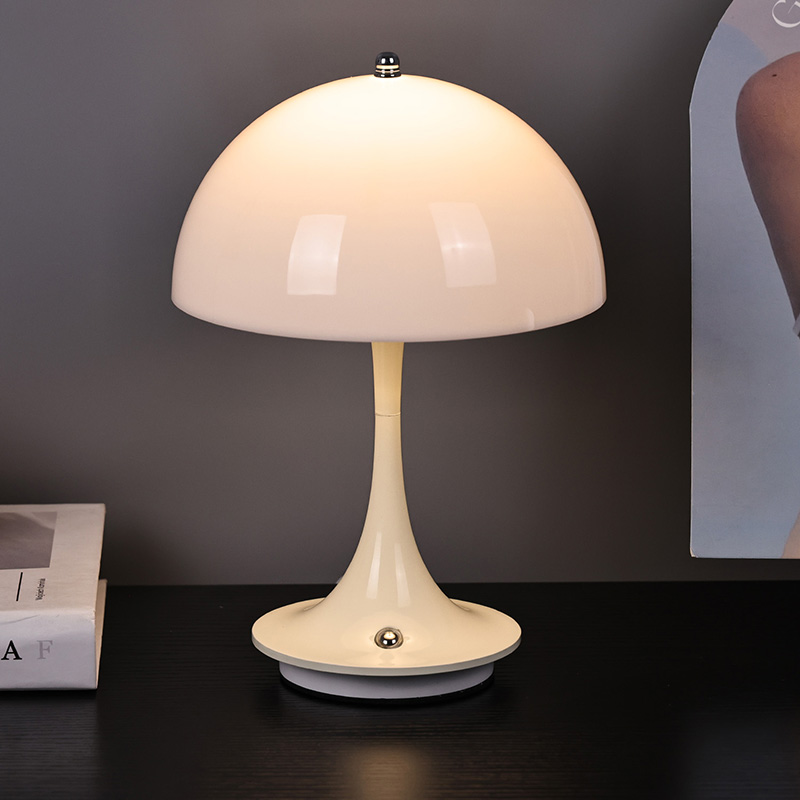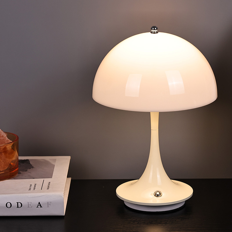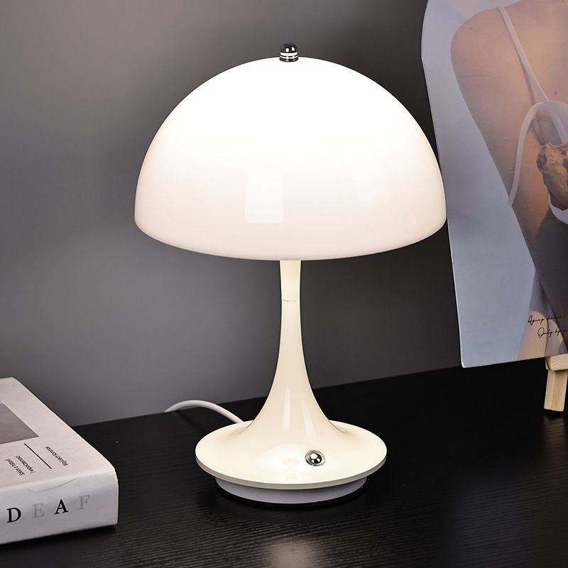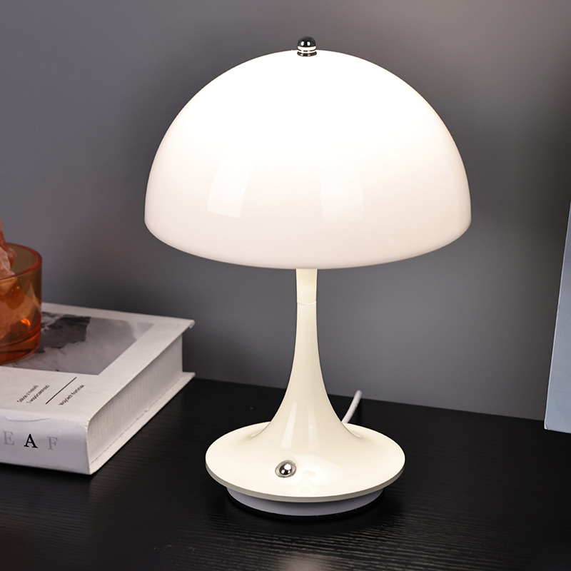मशरूम शेड के साथ क्यूट एलईडी होम लैंप में प्लास्टिक लैंपशेड के साथ मेटल बेस और मेटल लैंप पोस्ट है। लैंपशेड की सतह मोमयुक्त और चिकनी है, एक बहुत अच्छे स्पर्श के साथ, एक मशरूम जैसा दिखता है