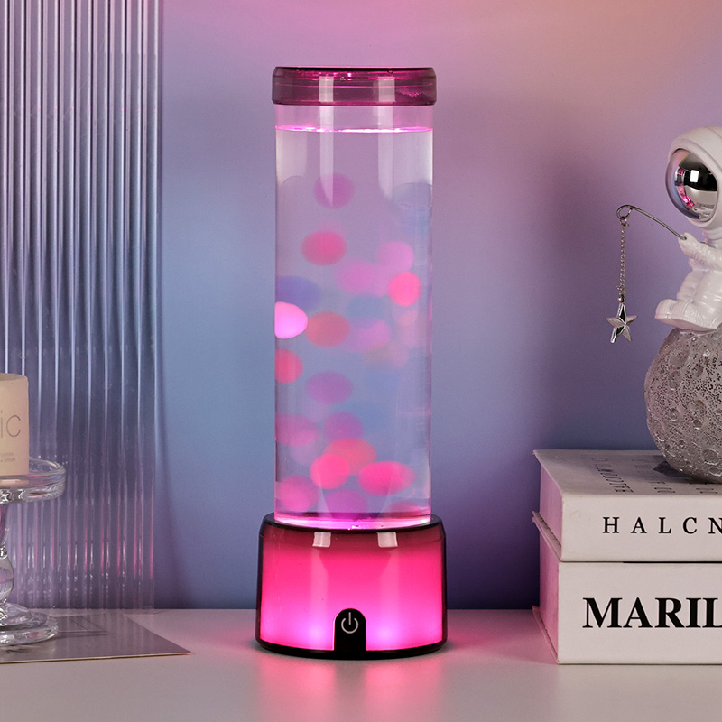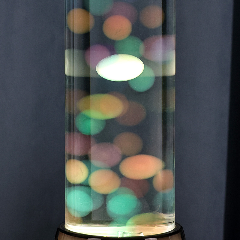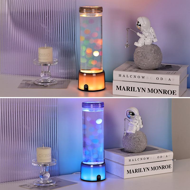 लैंप का लंबा, सुंदर सिलेंडर आकार इसे एक आधुनिक, न्यूनतम रूप देता है जो विभिन्न आंतरिक शैलियों का पूरक है। इसका पारदर्शी शरीर तैरती हुई जेलीफ़िश और झिलमिलाते प्रकाश प्रतिबिंब सहित आंतरिक तत्वों की पूर्ण दृश्यता की अनुमति देता है। अंदर का तरल विशेष रूप से पानी के प्रवाह को अनुकरण करने के लिए तैयार किया गया है, जो तैरने की गति के यथार्थवाद को बढ़ाता है। जैसे ही एलईडी का रंग बदलता है, जेलिफ़िश जीवन के साथ स्पंदित होती दिखाई देती है, जिससे दृश्य में गहराई और गति जुड़ जाती है।