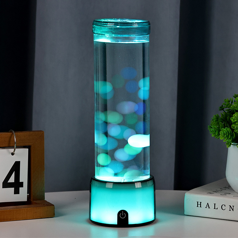 बारीकियों पर ध्यान देकर तैयार किया गया, यह लैंप अपने पारदर्शी बेलनाकार शरीर के साथ एक वास्तविक मछलीघर की उपस्थिति की नकल करता है जो स्पष्ट तरल और चमकदार जेलीफ़िश आकृतियों से भरा होता है जो खूबसूरती से अंदर तैरते हैं। आंतरिक एलईडी प्रणाली से निकलने वाली हल्की चमक जेलिफ़िश की गति को बढ़ाती है, जिससे एक मनोरम बोके जैसा प्रभाव पैदा होता है जो गहरे पानी में बहते बायोलुमिनसेंट प्राणियों जैसा दिखता है। चाहे इसे नाइटस्टैंड, डेस्क, शेल्फ या लिविंग रूम टेबल पर रखा गया हो, यह लैंप किसी भी वातावरण में सुंदरता और आश्चर्य का स्पर्श जोड़ता है।