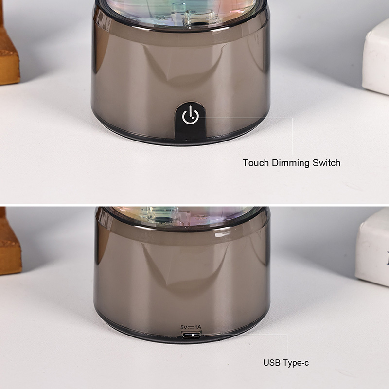 आप आधार पर स्थित अंतर्निर्मित बटन स्विच का उपयोग करके प्रकाश अनुभव को भी अनुकूलित कर सकते हैं। एक साधारण प्रेस के साथ, आप लैंप को चालू या बंद कर सकते हैं, विभिन्न रंग मोड के माध्यम से चक्र कर सकते हैं, या अपने पसंदीदा रंग में लॉक कर सकते हैं। चमक का स्तर समायोज्य है, जो आपको सही मूड सेट करने की अनुमति देता है - नरम रात की रोशनी से लेकर जीवंत उच्चारण प्रकाश तक।