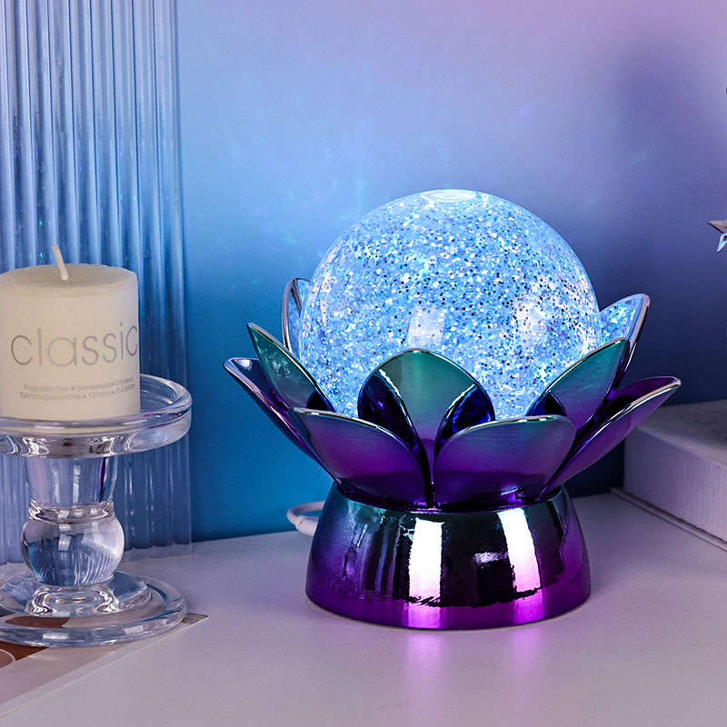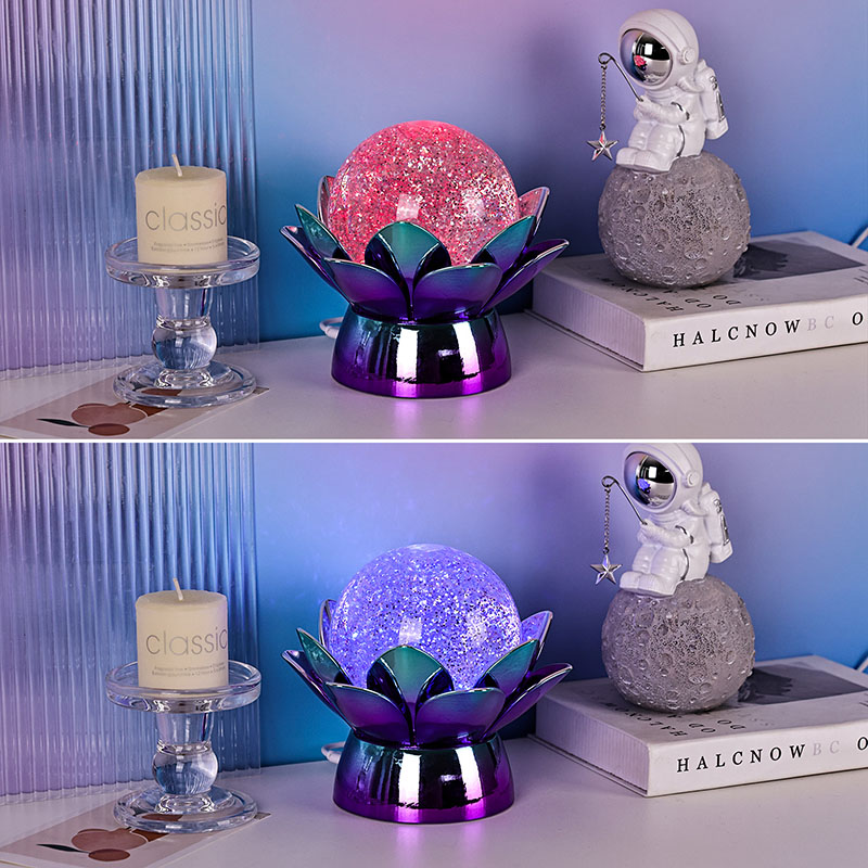 लोटस क्रिस्टल बॉल नाइट लाइट के जादू को अपने स्थान को सुंदरता, शांति और सुंदरता से ऊपर उठाने दें