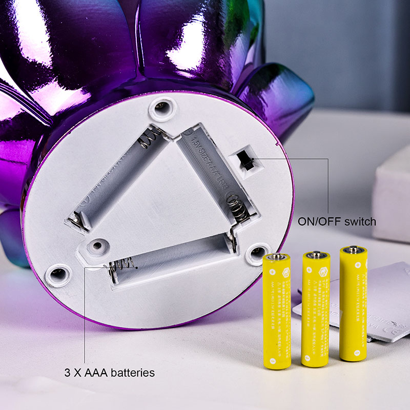 नाइट लाइट का आधार शानदार स्प्रे-पेंट बैंगनी रंग के साथ उच्च गुणवत्ता वाले प्लास्टिक से तैयार किया गया है