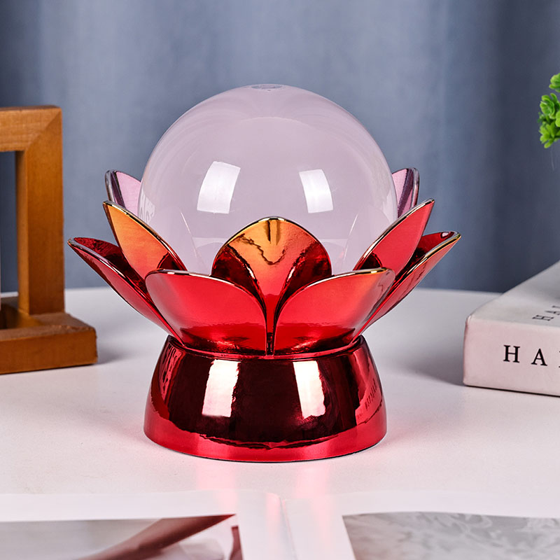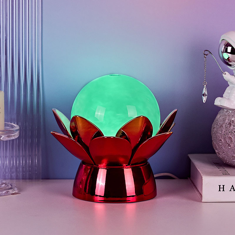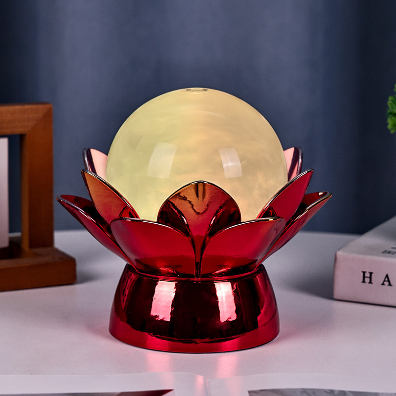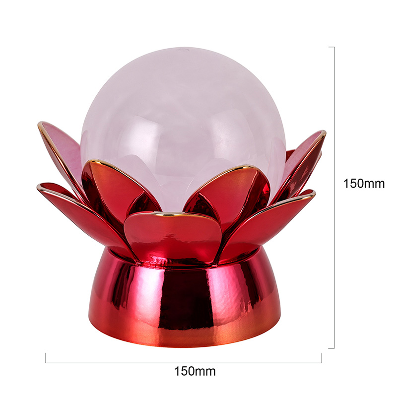 उच्च गुणवत्ता वाली सामग्रियों से निर्मित, आधार चमकदार लाल-सोने की फिनिश के साथ पॉलिश धातु से बना है जो प्रकाश को खूबसूरती से प्रतिबिंबित करता है, जिससे इसकी उपस्थिति में गहराई और समृद्धि आती है। कमल का डिज़ाइन न केवल एक सौंदर्य केंद्र बिंदु के रूप में कार्य करता है, बल्कि पूर्वी परंपराओं में निहित प्रतीकात्मक अर्थ भी रखता है - जो ज्ञान, लचीलापन और सद्भाव का प्रतिनिधित्व करता है। परावर्तक सतह दृश्य प्रभाव को बढ़ाती है, जिससे लैंप कम रोशनी वाले वातावरण में भी चमकता है।
