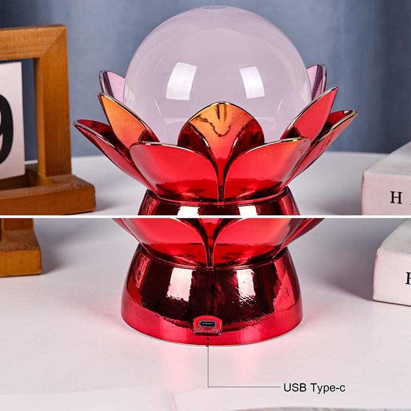 मनमोहक लोटस क्लाउड ग्लोब नाइट लाइट - प्रकृति से प्रेरित डिजाइन, सुखदायक माहौल और आधुनिक तकनीक का एक मंत्रमुग्ध कर देने वाला मिश्रण। इस खूबसूरत सजावटी लैंप में एक पारभासी ग्लास ग्लोब है जो एक विशेष तरल से भरा हुआ है जो बहते बादलों का अनुकरण करता है, एक शांत, अलौकिक प्रभाव पैदा करता है क्योंकि यह धीरे से घूमता है और बहता है। पवित्र कमल के फूल से प्रेरित, यह रात्रि प्रकाश खिलते हुए कमल की पंखुड़ियों के आकार के एक सुंदर रूप से तैयार किए गए धातु के आधार पर स्थित है, जो पवित्रता, शांति और आध्यात्मिक जागृति का प्रतीक है।