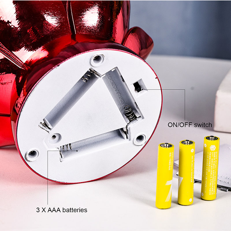 तीन एएए बैटरी (शामिल) द्वारा संचालित, लोटस क्लाउड ग्लोब नाइट लाइट स्थापित करना आसान और पोर्टेबल है, इसके लिए किसी वायरिंग या इलेक्ट्रिकल आउटलेट की आवश्यकता नहीं होती है। इसका कॉम्पैक्ट आकार इसे विभिन्न सेटिंग्स के लिए उपयुक्त बनाता है - नाइटस्टैंड, डेस्क, शेल्फ या वेदी पर - बिना ज्यादा जगह लिए। बैटरी चालित डिज़ाइन सुरक्षित संचालन भी सुनिश्चित करता है, जो इसे बच्चों के कमरे या बिजली कटौती के दौरान उपयोग के लिए उपयुक्त बनाता है।