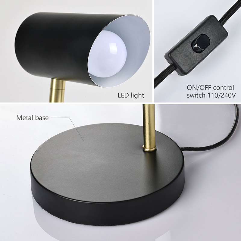 फोल्डेबल टेबल लैंप मुख्य रूप से धातु से बना होता है, जिसमें एक हेड लैंप होता है जिसे कई कोणों से मोड़ा जा सकता है। काला लैंप बॉडी अधिक पारंपरिक शैली प्रदर्शित करता है