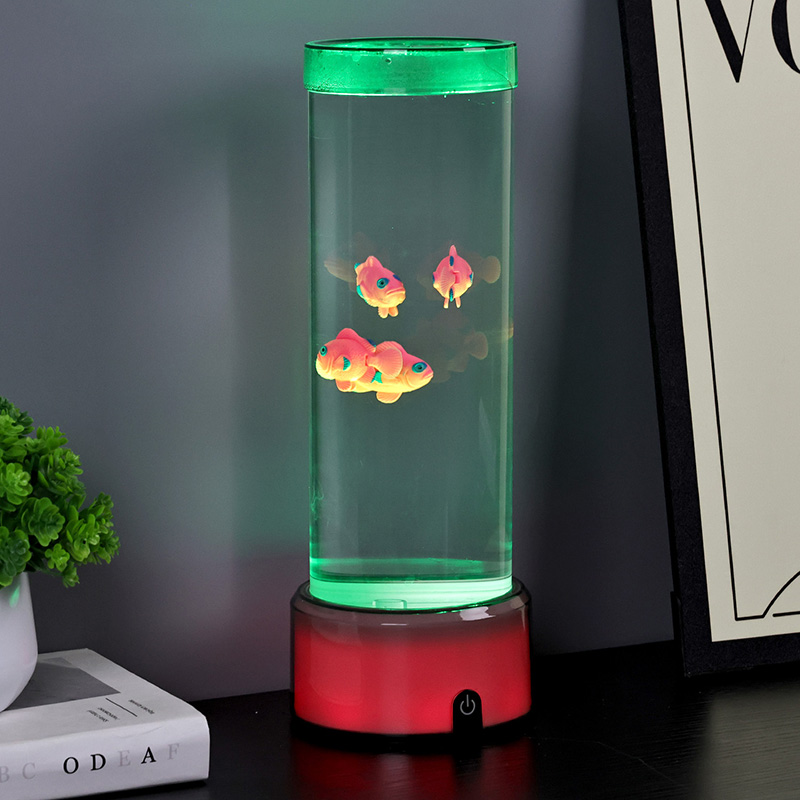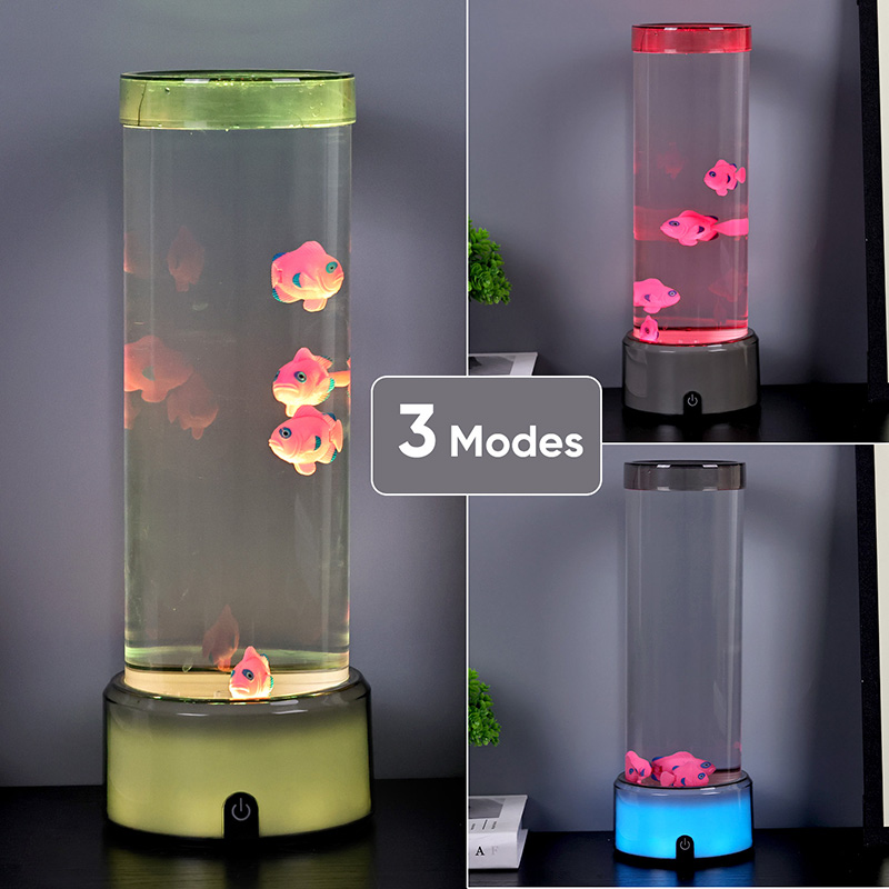 चयन स्विच और जेलीफ़िश तैरना स्पर्श करेंआरजीबी बेस डेकोरेटिव लैंप के साथ जेलिफ़िश फिश लैंप, बेलनाकार जल धारण डिजाइन के साथ बच्चों के लिए एक नया डिज़ाइन किया गया देखने का खिलौना। पानी भरने के बाद तीन छोटी मछलियाँ अंदर रख दी जाती हैं। आरजीबी बेस वाला जेलिफ़िश फिश लैंप नीचे की छोटी मोटर के घूमने पर ऊपर और नीचे तैर सकता है। वहीं, बेस में RGB कलर ट्रांसफॉर्मेशन है। इस उत्पाद की सबसे बड़ी खासियत यह है कि रंग परिवर्तन के साथ आधार भी बदल जाता है। पूरी तरह से प्लास्टिक डिज़ाइन पानी को रोके बिना बहुत हल्का है, जो परिवहन के लिए बहुत सुविधाजनक है। फिश लैंप का पावर स्रोत यूएसबी टाइप सी लो वोल्टेज द्वारा प्रदान किया जाता है, जो बहुत सुविधाजनक है