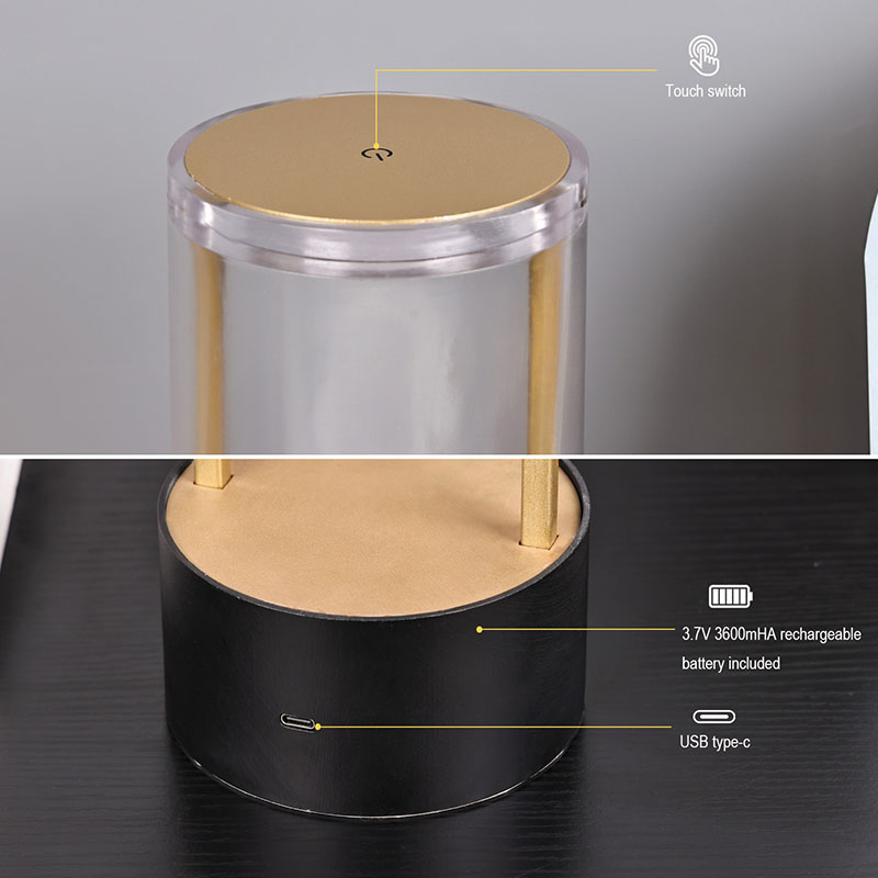 लैंटर्न स्टाइल स्मॉल टेबल लैंप का शीर्ष एक स्पर्श संवेदनशील प्रकाश स्विच है, जिसके नीचे एक टाइप-सी रिचार्जेबल चार्जिंग हेड है। शीर्ष एक पारदर्शी ऐक्रेलिक कवर से बना है, और नीचे एक धातु आधार है। समग्र गोलाकार संरचना चल प्रकाश व्यवस्था की अनुमति देती है