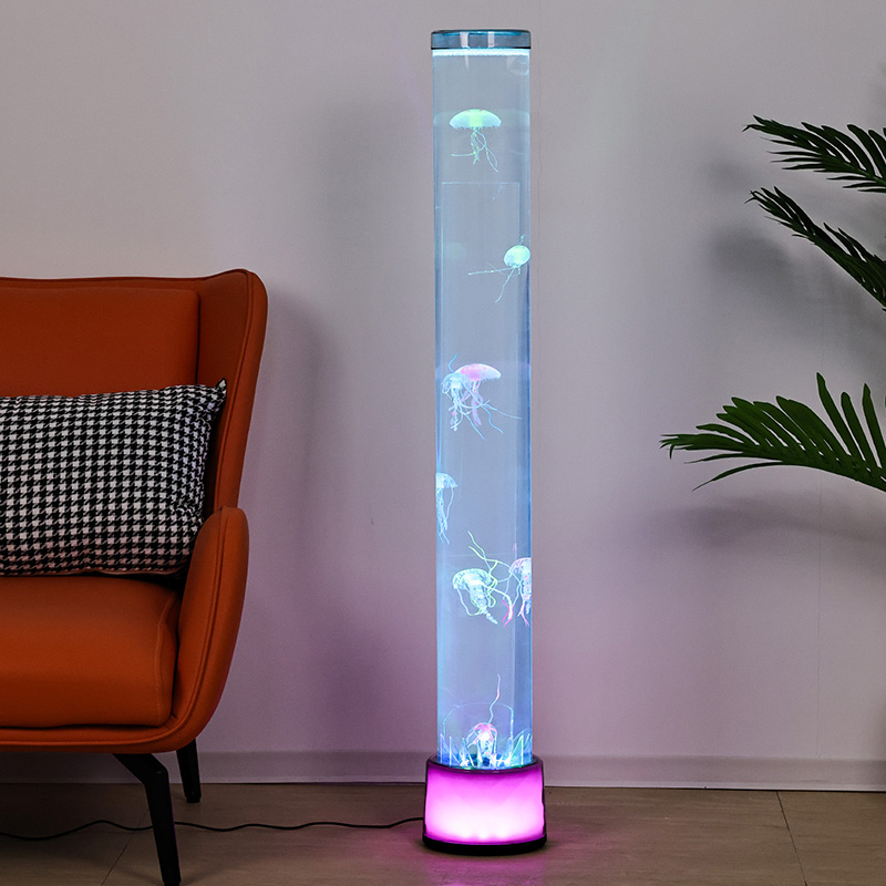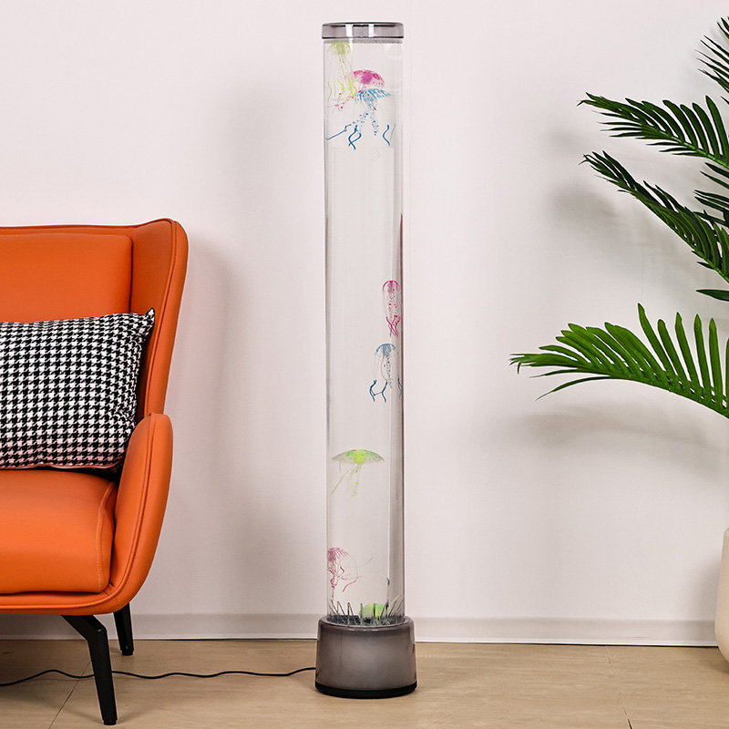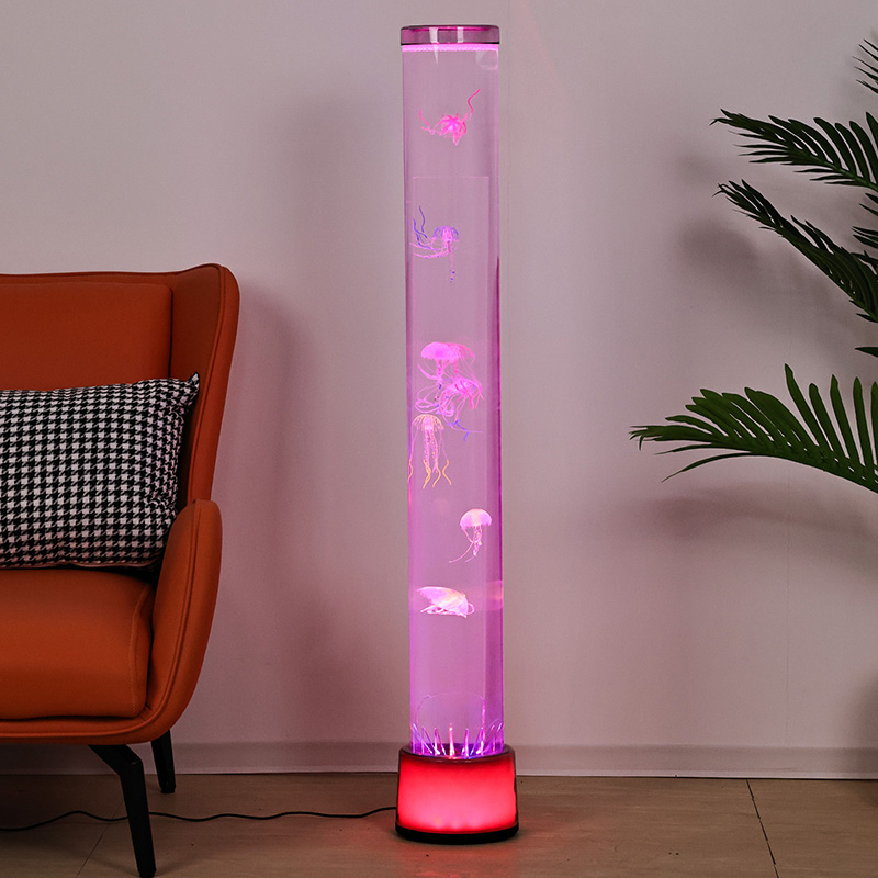 39.5*39.5*115 सेमीबड़ा आरजीबी फ़्लोर जेलीफ़िश लैंप एक रचनात्मक घरेलू सजावट का टुकड़ा है जो आधुनिक तकनीक को प्राकृतिक सौंदर्यशास्त्र के साथ मिश्रित करता है, जिसमें स्वप्निल प्रकाश प्रभाव और जीवंत जेलीफ़िश डिज़ाइन शामिल हैं।