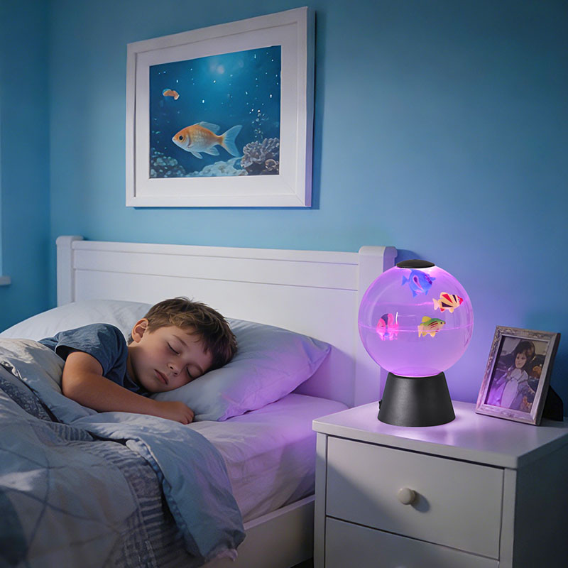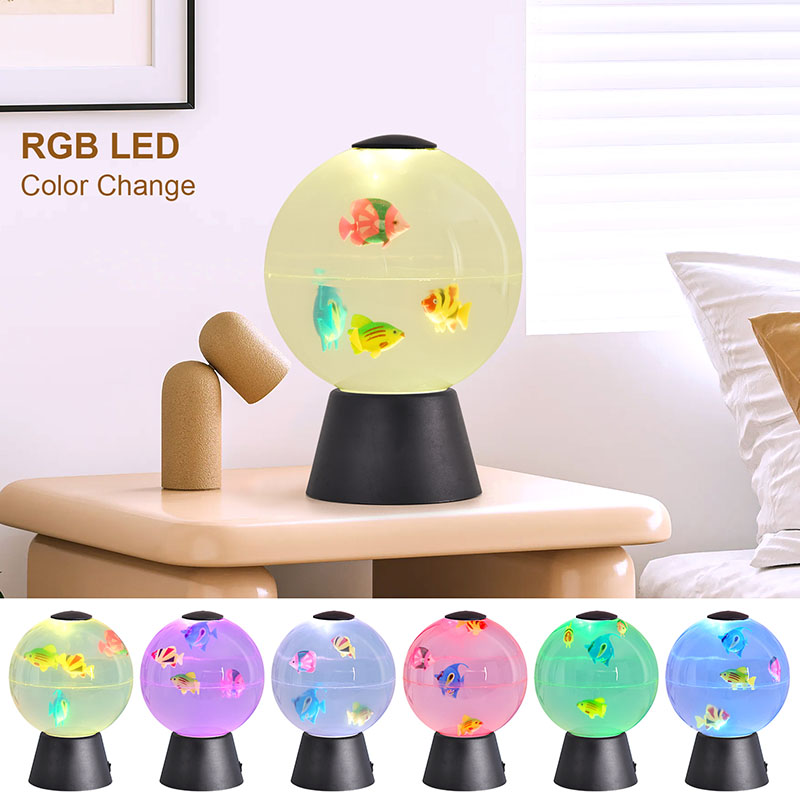 किसी भी स्थान में अद्वितीय उच्चारण, यह फिश ग्लोब चंचल एनीमेशन के साथ सुखदायक प्रकाश प्रभाव को जोड़ता है