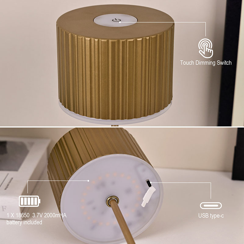 टच स्विच (टाइप-सी चार्ज)विभिन्न परिदृश्यों की प्रकाश आवश्यकताओं को पूरा करने के लिए, बैटरी के साथ मेटल शेड छोटा टेबल लैंप उन्नत 3-स्पीड डिमिंग फ़ंक्शन से सुसज्जित है। सरल ऑपरेशन के साथ, आप प्रकाश की तीव्रता को स्वतंत्र रूप से समायोजित कर सकते हैं।