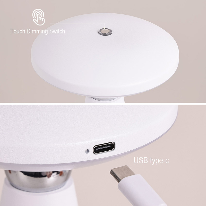 डिमिंग स्विच को स्पर्श करेंरिचार्जेबल बैटरी के साथ मशरूम एलईडी डेस्क लैंप अपनी सरल और चिकनी रेखाओं और एर्गोनोमिक आकार, मशरूम के आकार और सुई की पूंछ डिजाइन और धातु गर्म प्रकाश एलईडी डेस्क लैंप के साथ, न केवल एक व्यावहारिक प्रकाश उपकरण है,