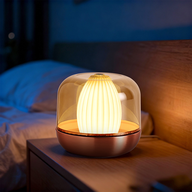 इस गर्म चमक वाली रात की रोशनी की डिज़ाइन प्रेरणा प्रकृति और वास्तुशिल्प सौंदर्यशास्त्र के संलयन से उत्पन्न होती है। अपने गोल और मोटे समग्र आकार के साथ, यह एक सावधानीपूर्वक नक्काशीदार एम्बर रत्न जैसा दिखता है। डेस्क या मेज पर रखा जाए तो यह सहजता से एक दृश्य केंद्र बिंदु बन जाता है। बाहरी परत में एक उच्च-पारदर्शिता आवरण होता है जो न केवल आंतरिक प्रकाश स्रोत की रक्षा करता है बल्कि अपवर्तन के माध्यम से अद्वितीय प्रकाश और छाया परतें भी बनाता है, जो एक स्वप्न जैसा दृश्य प्रभाव पैदा करता है।