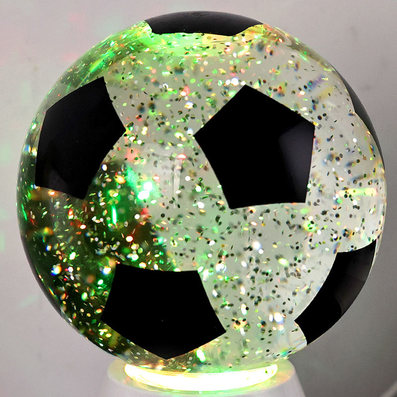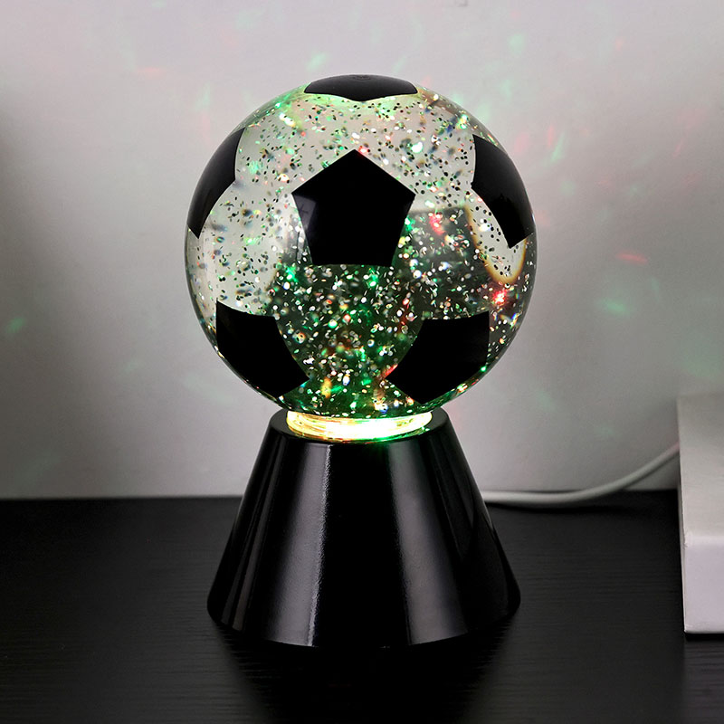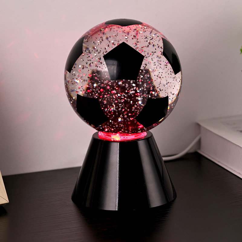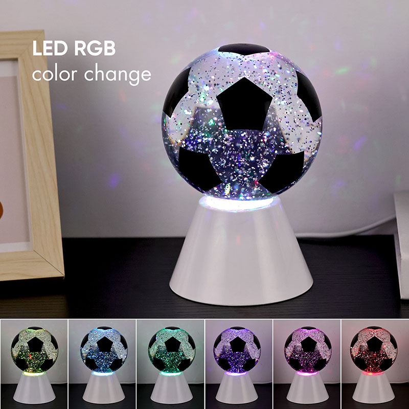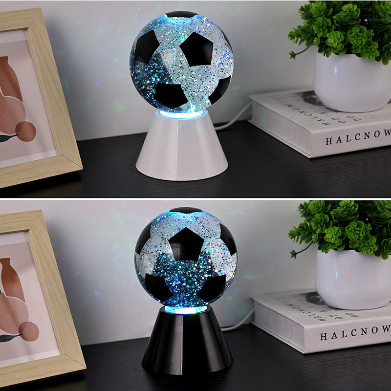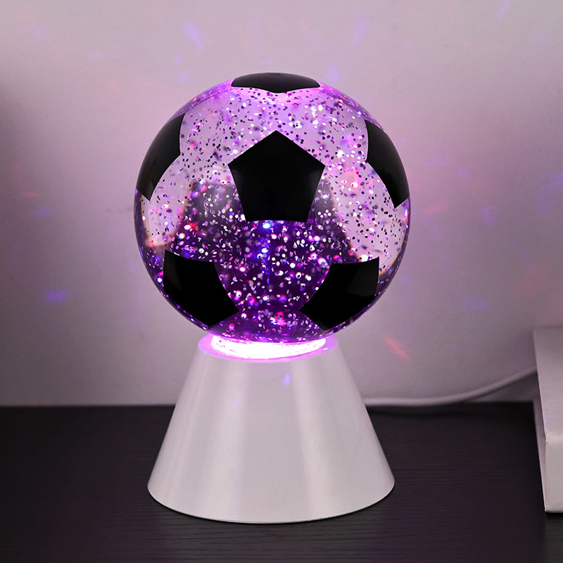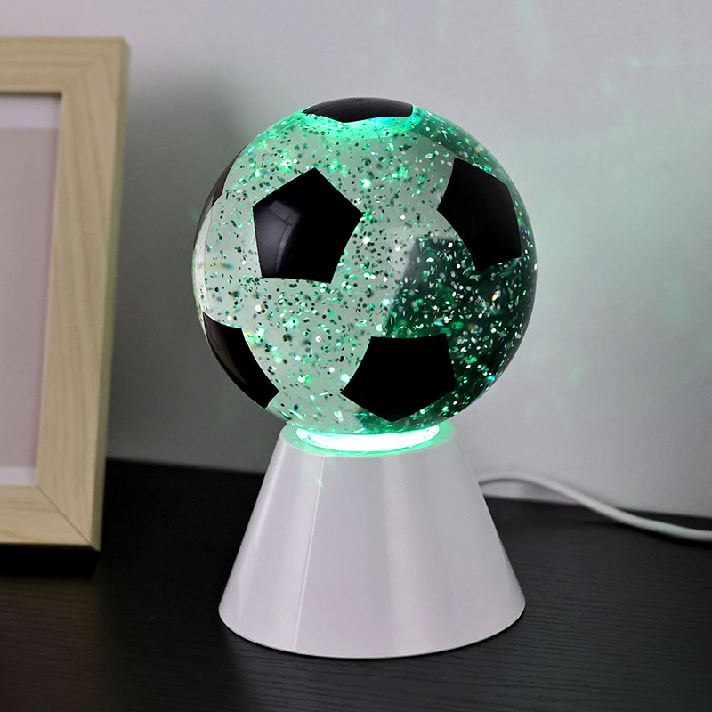 सफेद + एलईडी रंग बदलनागोलाकार उपहार प्रकाश एक ऊपरी कांच और एक प्लास्टिक आधार से बना है। कांच की सतह फुटबॉल पैटर्न के साथ मुद्रित होती है, जिसे विभिन्न रंगों में मुद्रित किया जा सकता है। फुटबॉल शेड के साथ नाइट लाइट की मुख्य विशेषता यह है कि गोले के अंदर तरल पदार्थ होता है, जिसमें सेक्विन होते हैं। स्विच चालू होने के बाद, अंतर्निहित छोटी मोटर काम करना शुरू कर देती है, और ग्लास के अंदर तरल अनियमित रूप से चलेगा। वहीं, फुटबॉल शेड वाली नाइट लाइट की बॉटम लाइट बदलने लगती है, जो बेहद खूबसूरत है। फुटबॉल शेड के साथ नाइट लाइट का उपयोग मुख्य रूप से आंतरिक सजावट, कमरों, लिविंग रूम, होटल के कमरे और अन्य स्थानों के लिए किया जाता है, उत्पाद यूएसबी चार्जिंग के साथ भी आता है और 3एएए बैटरी का उपयोग कर सकता है।
