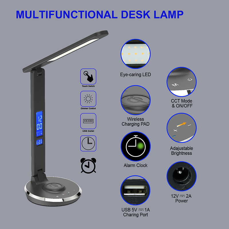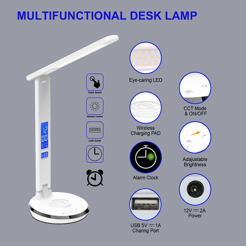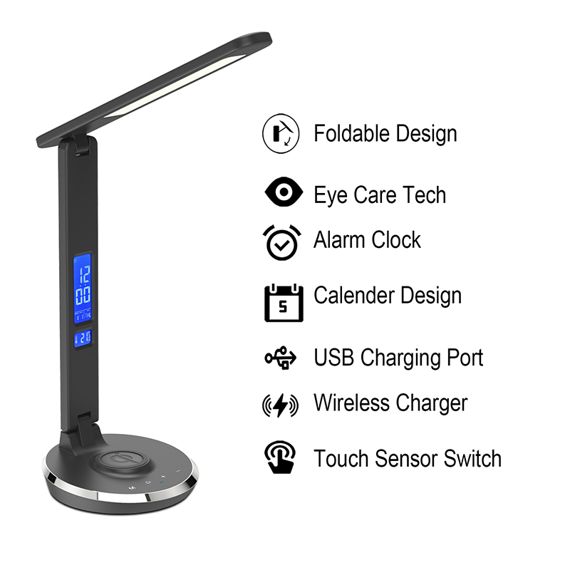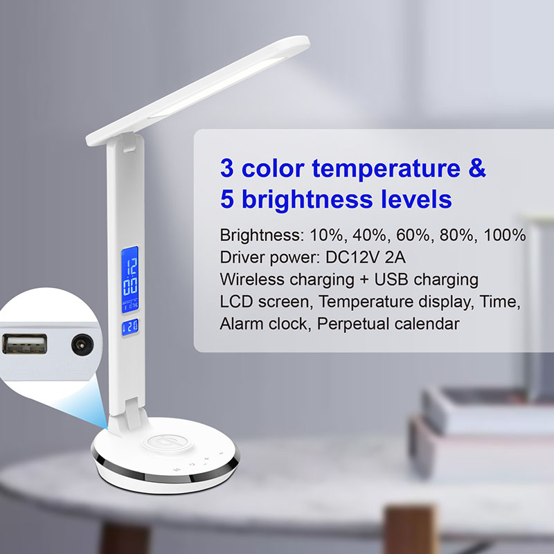 वायरलेस चार्जर के साथ क्यूई एलईडी डेस्क लैंप