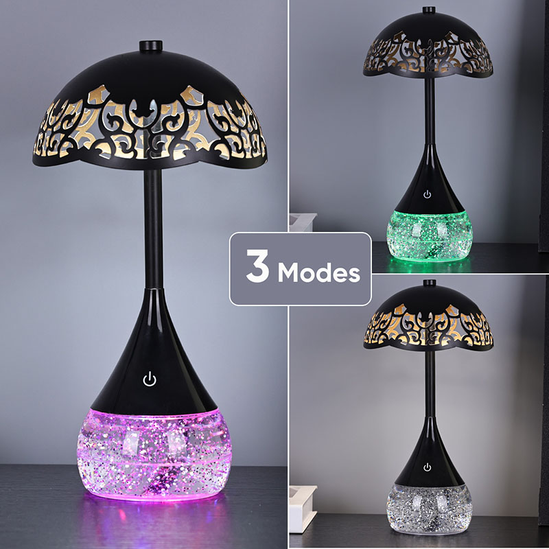 लेकिन रुको, और भी बहुत कुछ है। इस तरल के भीतर तैरना स्कैलियन के स्लाइस हैं, जो मिश्रण में कार्बनिक सौंदर्य का एक स्पर्श जोड़ते हैं। हां, आप उस सही को पढ़ते हैं - स्कैलियन। उनका प्राकृतिक हरा रंग आरजीबी बेस के बदलते रंगों के साथ खूबसूरती से विरोधाभास करता है, जबकि उनके कोमल बोलबाला जीवन का एक स्पर्श जोड़ता है और आरजीबी कलर बेस एलईडी डेस्क लैंप के साथ छाता आकार के साथ आंदोलन करता है। यह एक आश्चर्यजनक और रमणीय तत्व है जो इस दीपक को वास्तव में अद्वितीय बनाता है।
