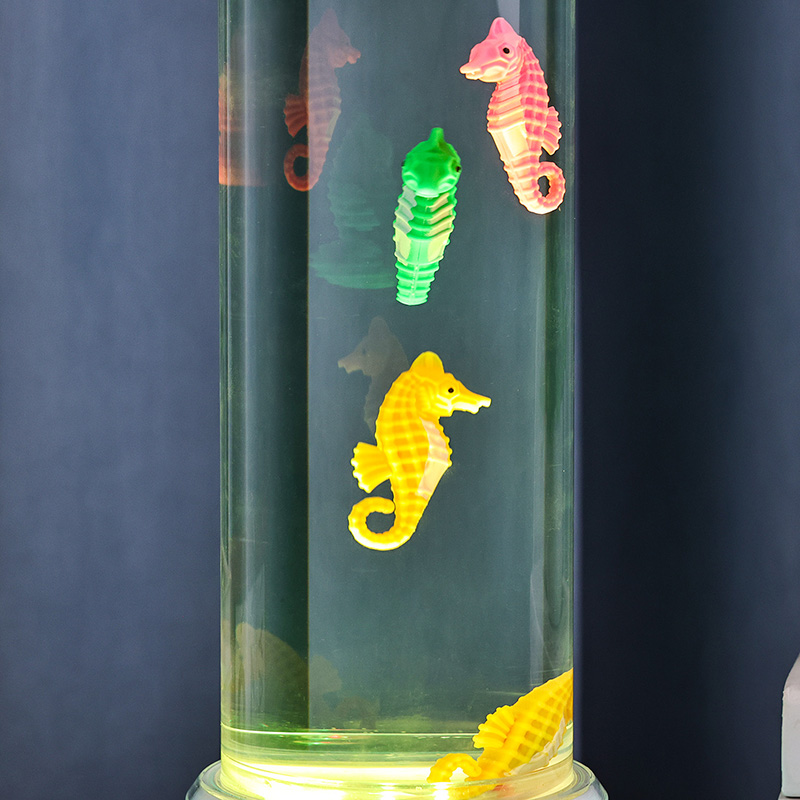 मंत्रमुग्ध कर देने वाला पानी के नीचे का दृश्य जो समुद्र की शांति को उजागर करता है पूरी इकाई उच्च गुणवत्ता वाले टिकाऊ प्लास्टिक से बनी है जो सुरक्षा स्थिरता और लंबे समय तक चलने वाले प्रदर्शन को सुनिश्चित करती है। लैंप लगभग 12 इंच लंबा है, जिसमें गैर विषैले तरल पदार्थ और रंगीन सीहॉर्स आभूषणों से भरी एक चिकनी पारदर्शी ट्यूब है। प्रत्येक सीहॉर्स को जीवंत रंगों और यथार्थवादी बनावट की विशेषता वाले विवरणों पर ध्यान देने के साथ सावधानीपूर्वक तैयार किया गया है। वे एक शांत आंतरिक परिसंचरण प्रणाली द्वारा संचालित तरल स्तंभ के भीतर खूबसूरती से तैरते हैं जो वास्तविक समुद्री जीवन के समान एक प्राकृतिक लहराती गति बनाता है। यह कोमल गति है। देखने में सुखदायक है और एक शांत दृश्य अनुभव प्रदान करते हुए तनाव को कम करने में मदद करता है