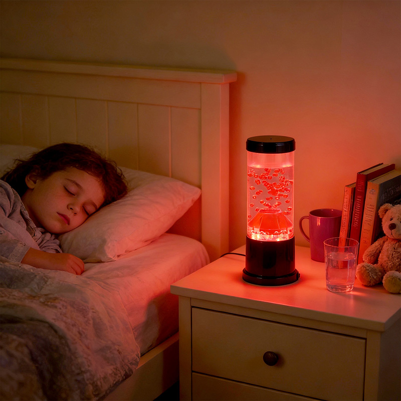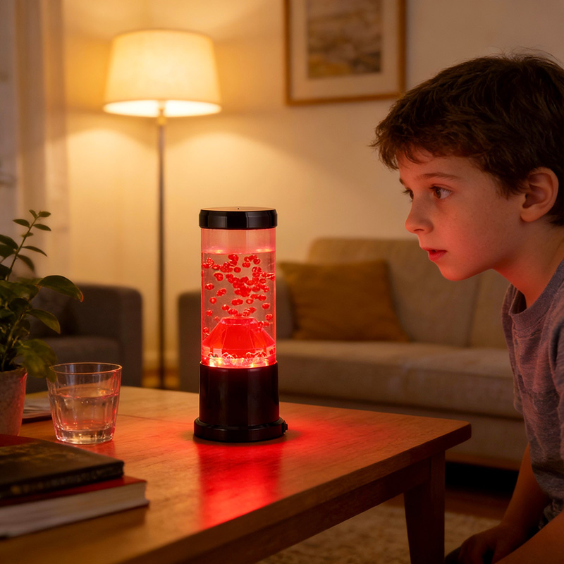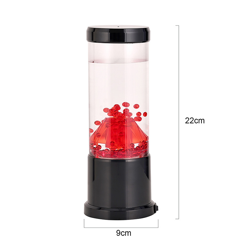 रात्रि प्रकाश का केंद्रीय भाग एक पारदर्शी स्तंभ है जो ज्वालामुखीय क्रेटर जैसा दिखता है। इस स्तंभ के अंदर, आपको लाल गोले का एक जीवंत प्रदर्शन मिलेगा, जो पृथ्वी की पपड़ी के भीतर बहते पिघले लावा की याद दिलाता है। ये गोले एक स्पष्ट तरल के भीतर खूबसूरती से तैरते हैं, जिससे एक गतिशील और कभी-कभी बदलते दृश्य प्रभाव पैदा होता है। जैसे ही रोशनी चमकती है, यह एक गर्म और आकर्षक चमक बिखेरती है, जो किसी भी कमरे में आरामदायक माहौल स्थापित करने के लिए बिल्कुल उपयुक्त है।