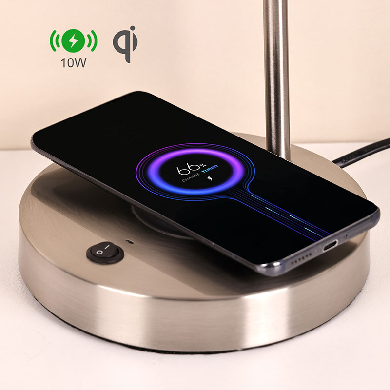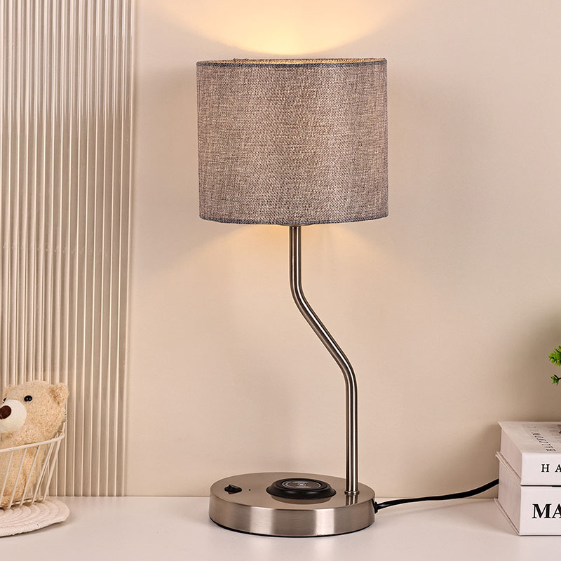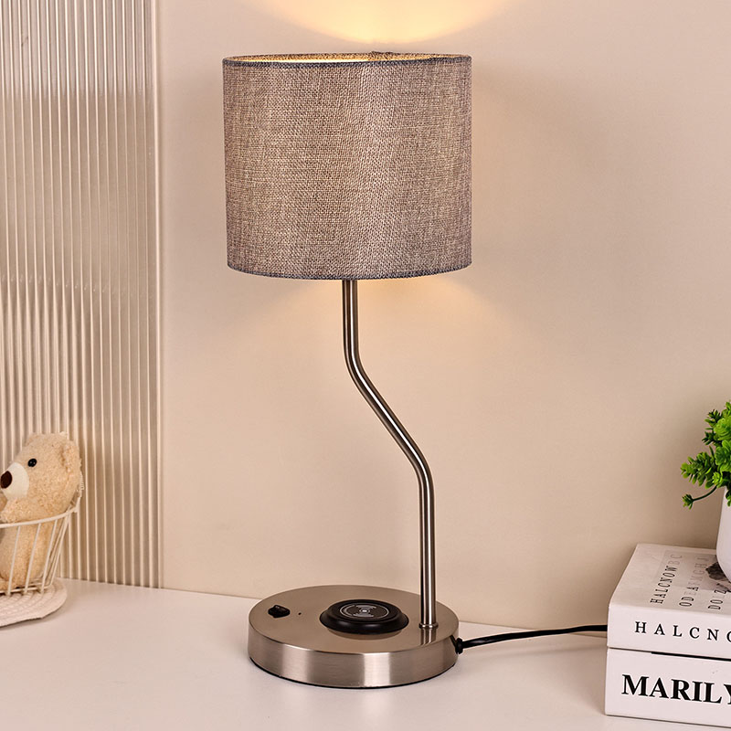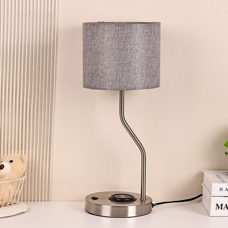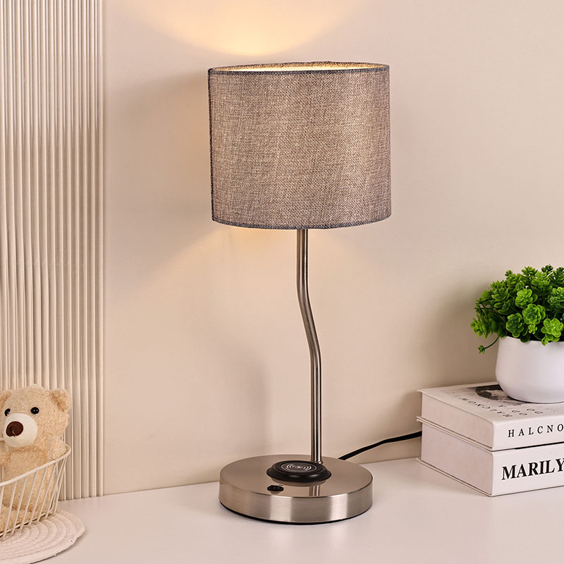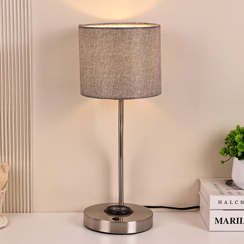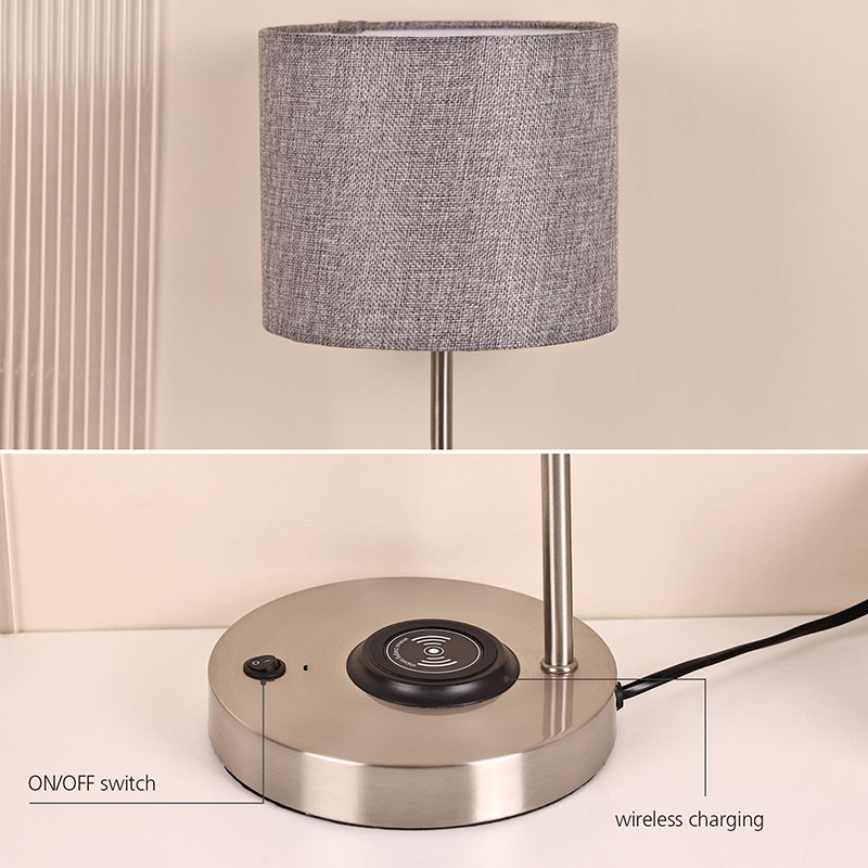 फैब्रिक शेड के साथ वायरलेस फोन चार्जर डेस्क लैंप में 5V1A वोल्टेज वायरलेस चार्जर लैंप है